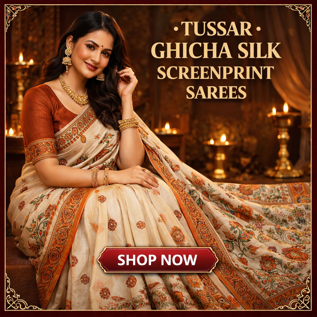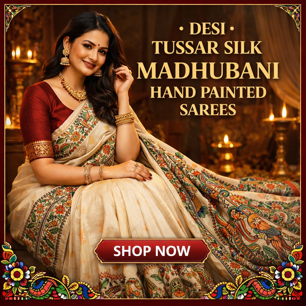 Tussar Ghicha Madhubani HandPainted Full Body Saree
