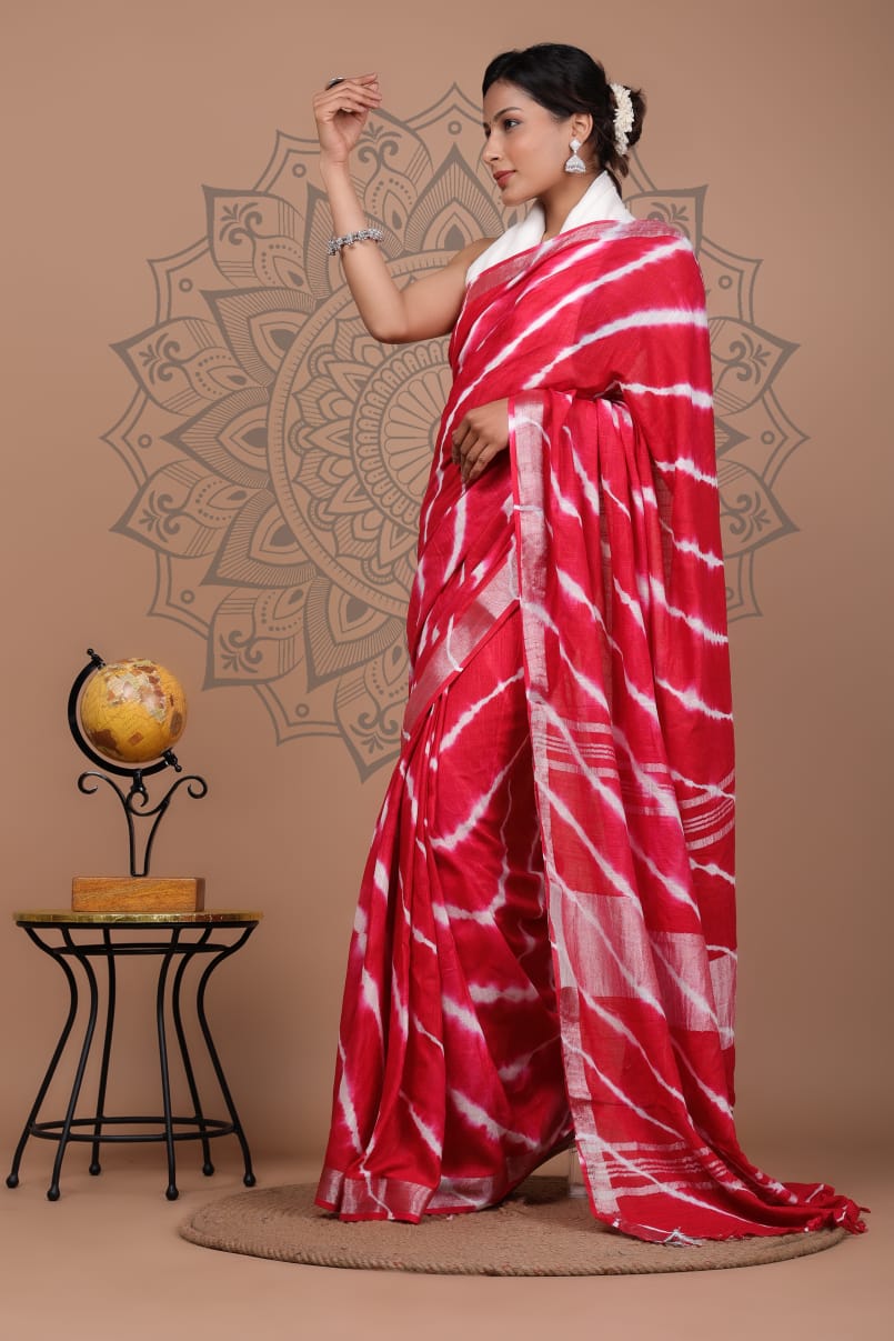 • Bhagalpuri Cotton Slub Shibori Saree With Running Blouse