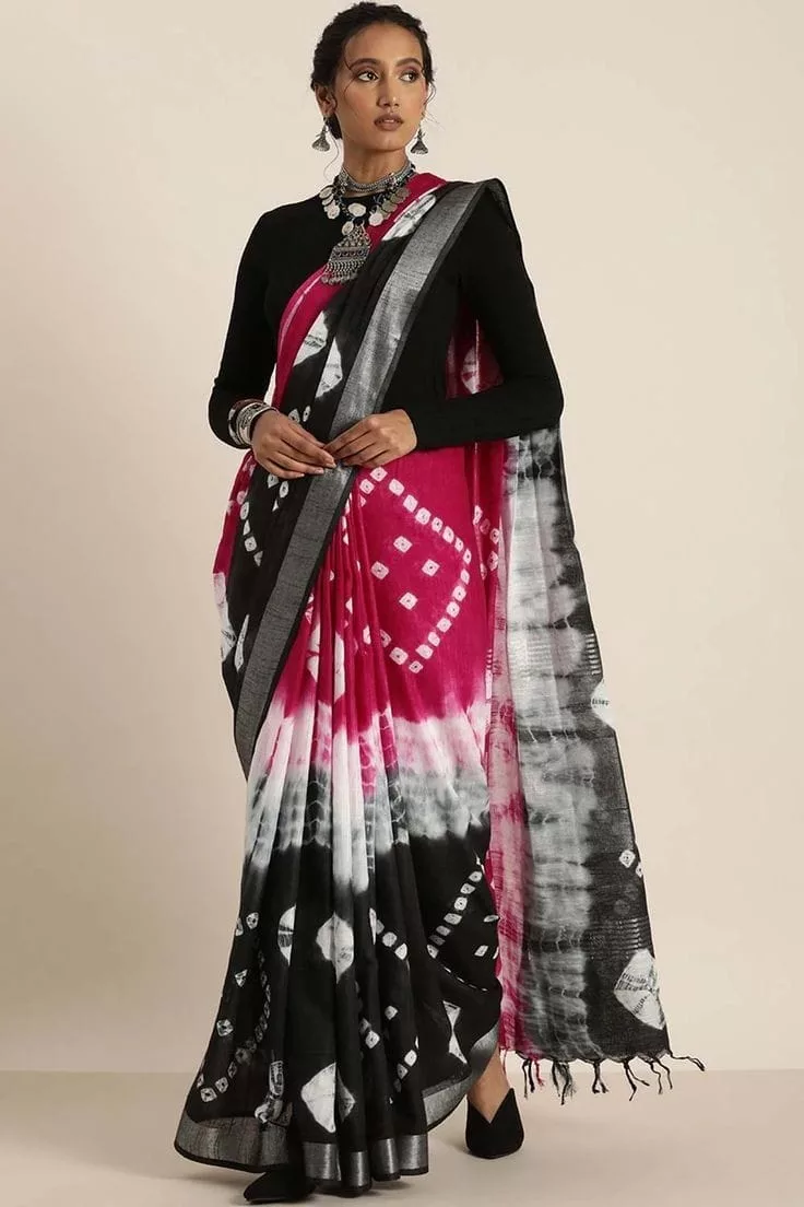 • Stunning Shibori print & Tie Dye Pallu & Zari border gives you elegant look in your beauty