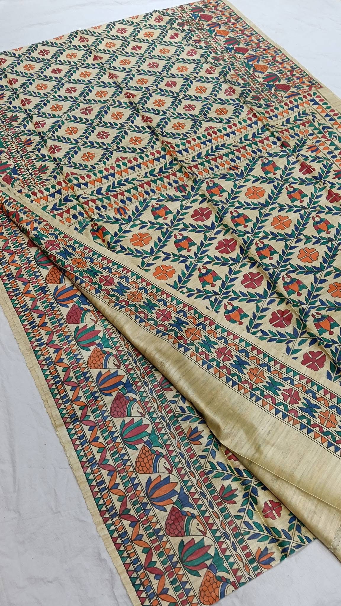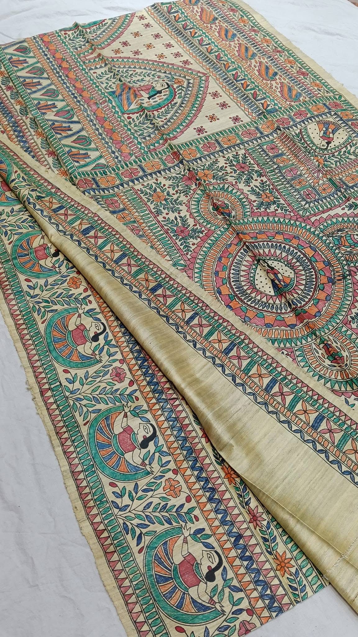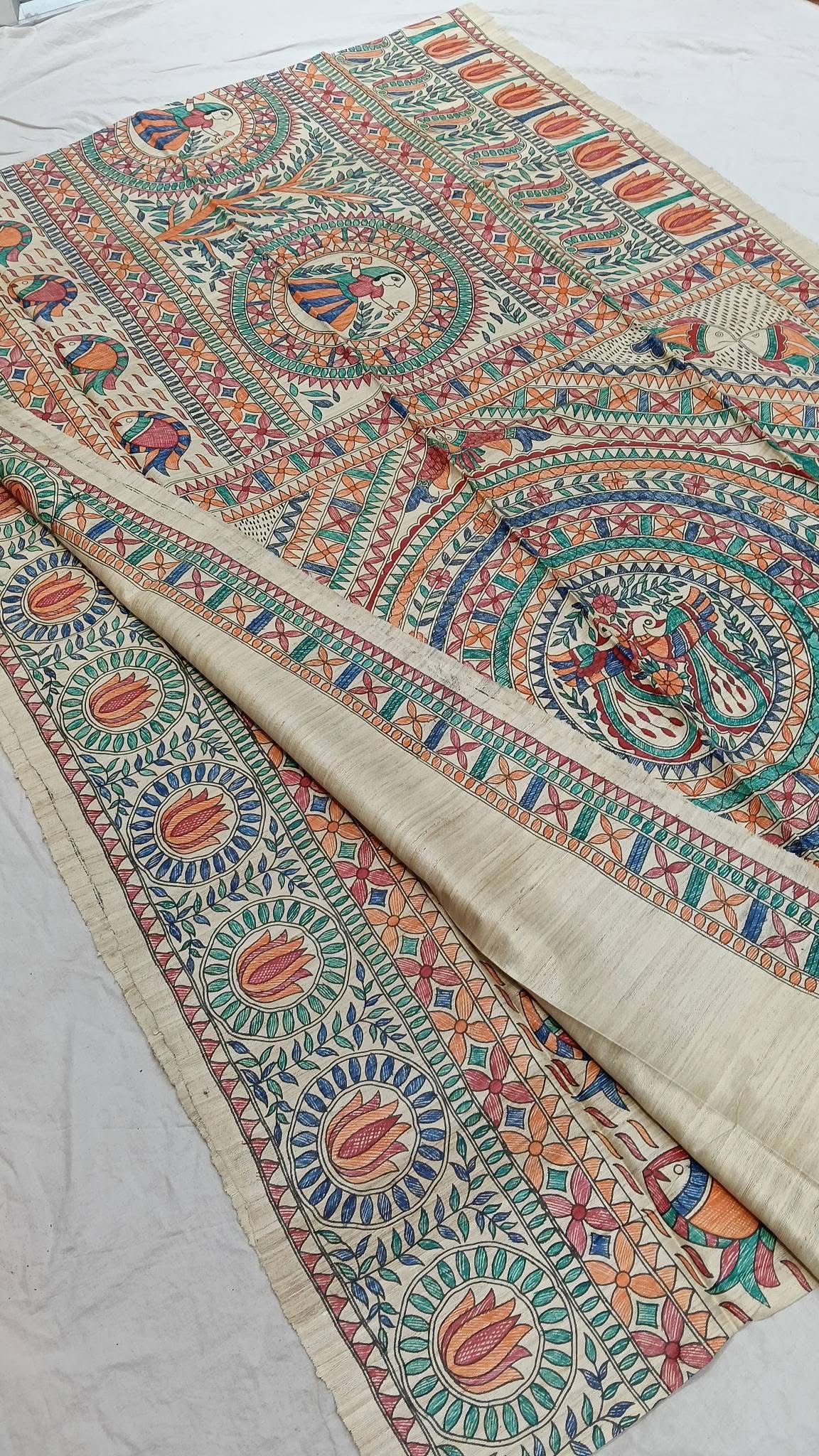 Tussar Ghicha Madhubani HandPainted Full Body Saree
