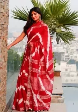 - Stunning Shibori print & Tie Dye Pallu & Zari border gives you elegant look in your beauty