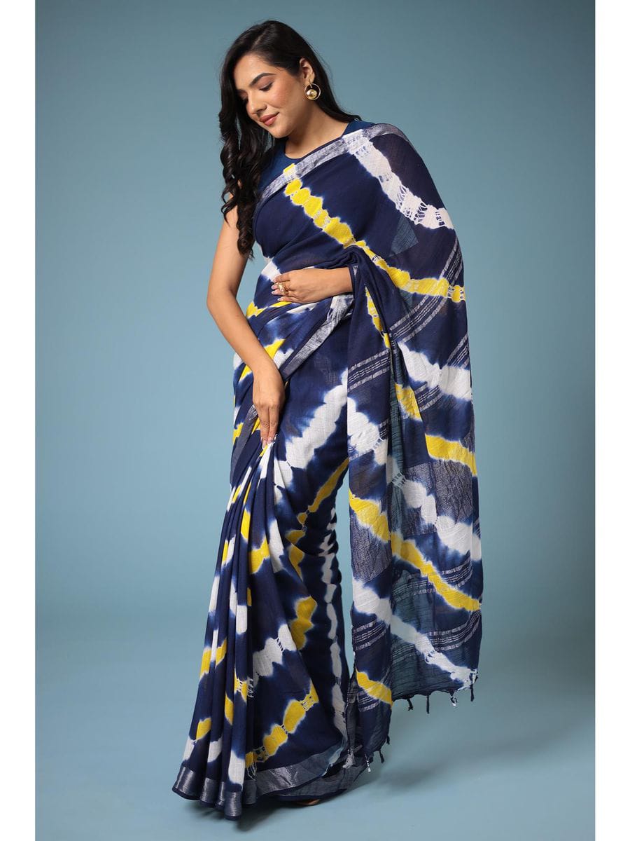 Bhagalpuri Cotton Slub Shibori Saree With Running Blouse