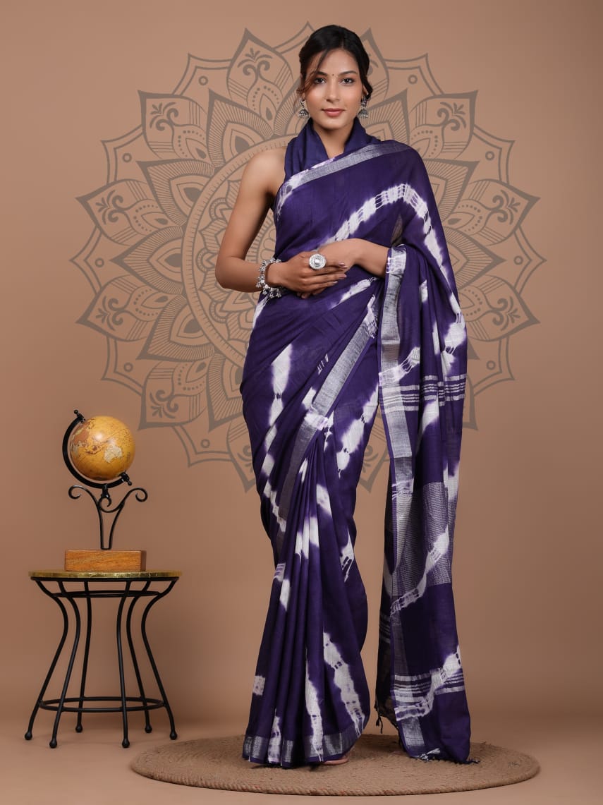 Enhance your celebration wardrobe with our stylish Shibori print cotton saree. Featuring traditional hand block printing from Bhagalpur, this saree offers a perfect blend of vibrant colors and luxurious comfort. Buy now to stand out in any festive event with this elegant piece!