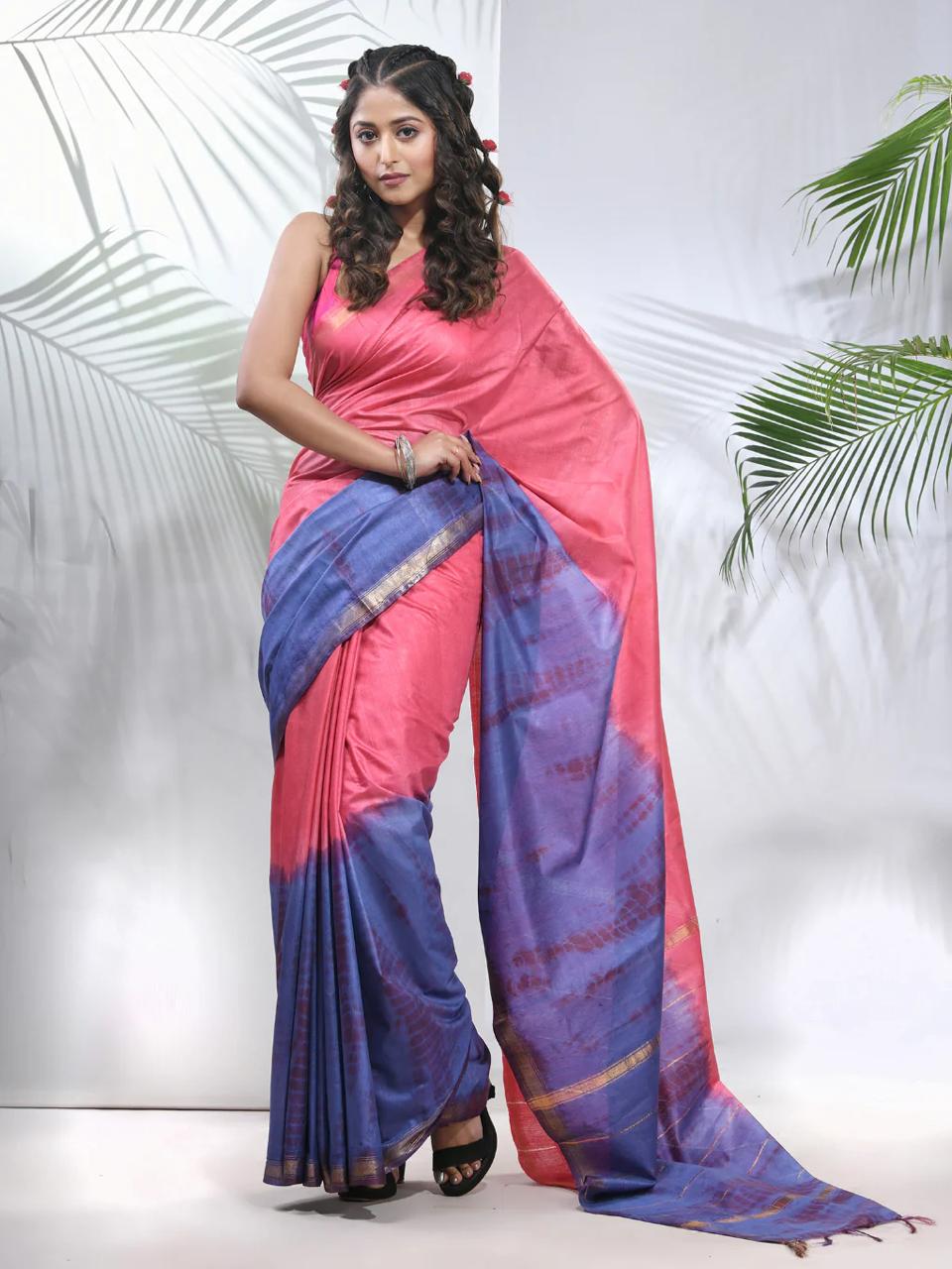 Bhagalpuri Cotton Slub Shibori Saree With Running Blouse