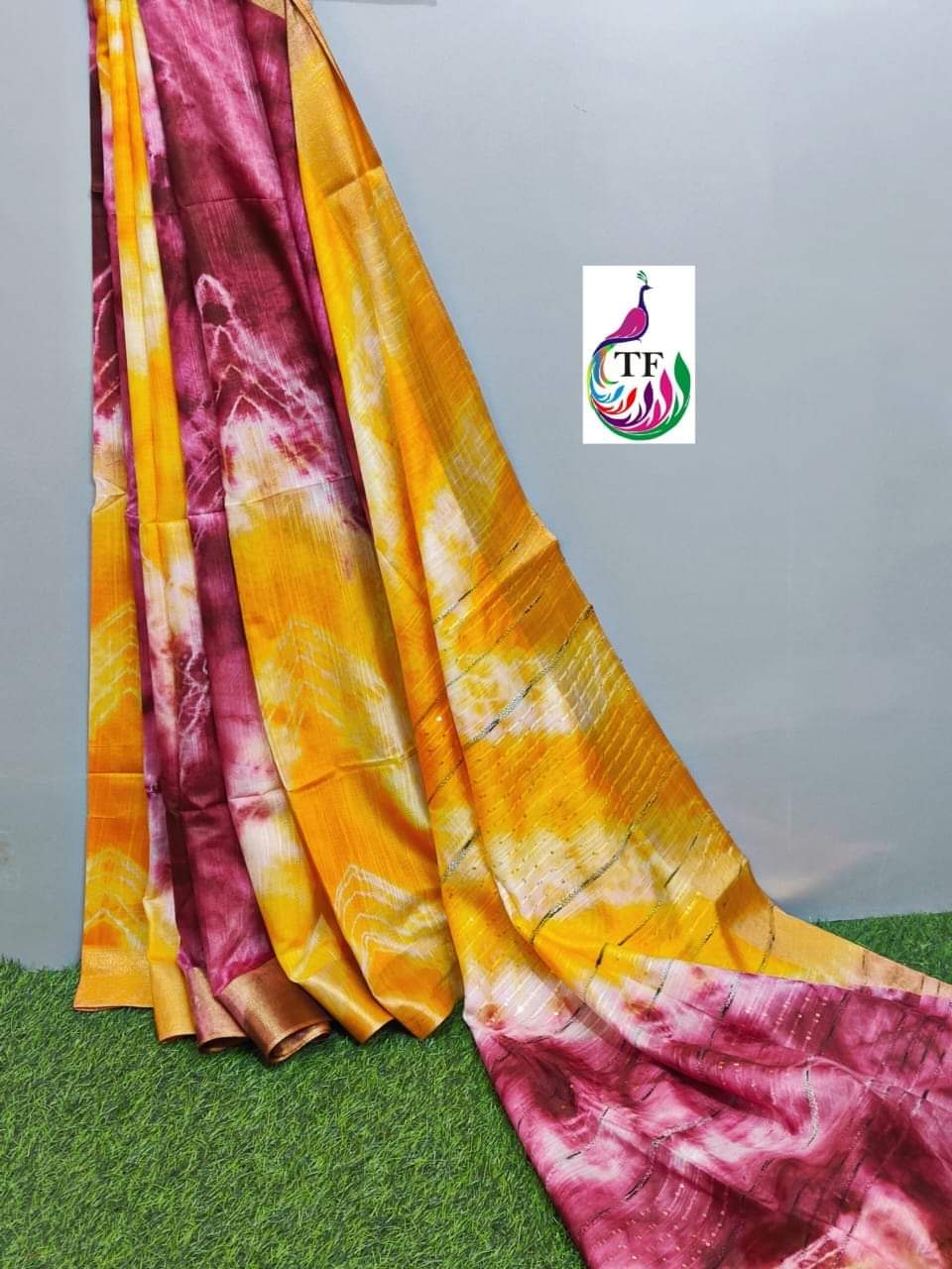 - Stunning shibori? tie and dye print, hand-dyed by skilled artisans adding elegance to the saree.