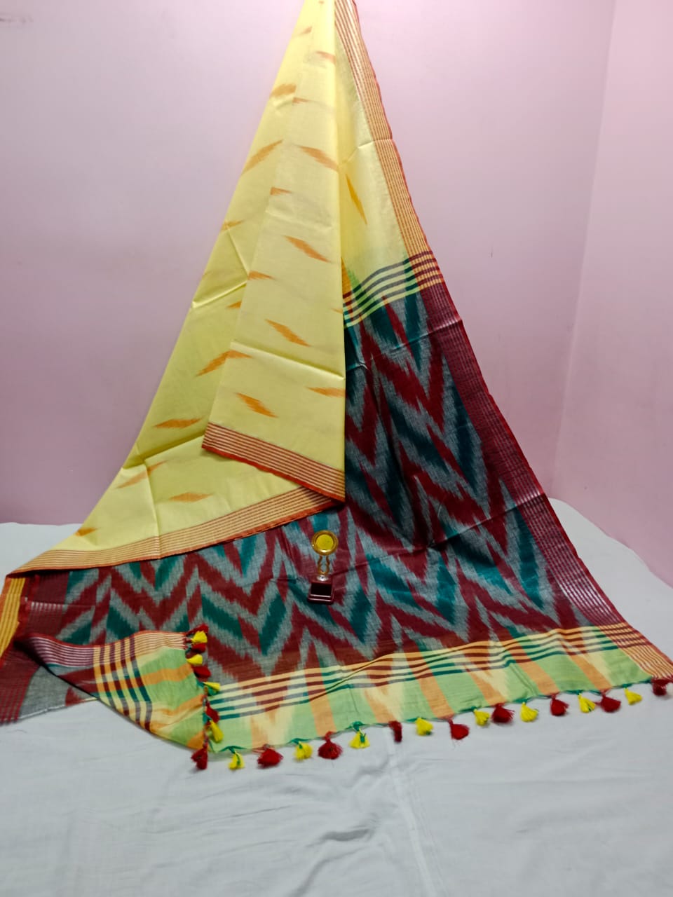 - Features an intricate Ikkat print.