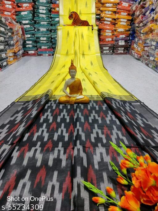 Traditional Handloom Pure Cotton Ikkat Saree for Women With Zari Border