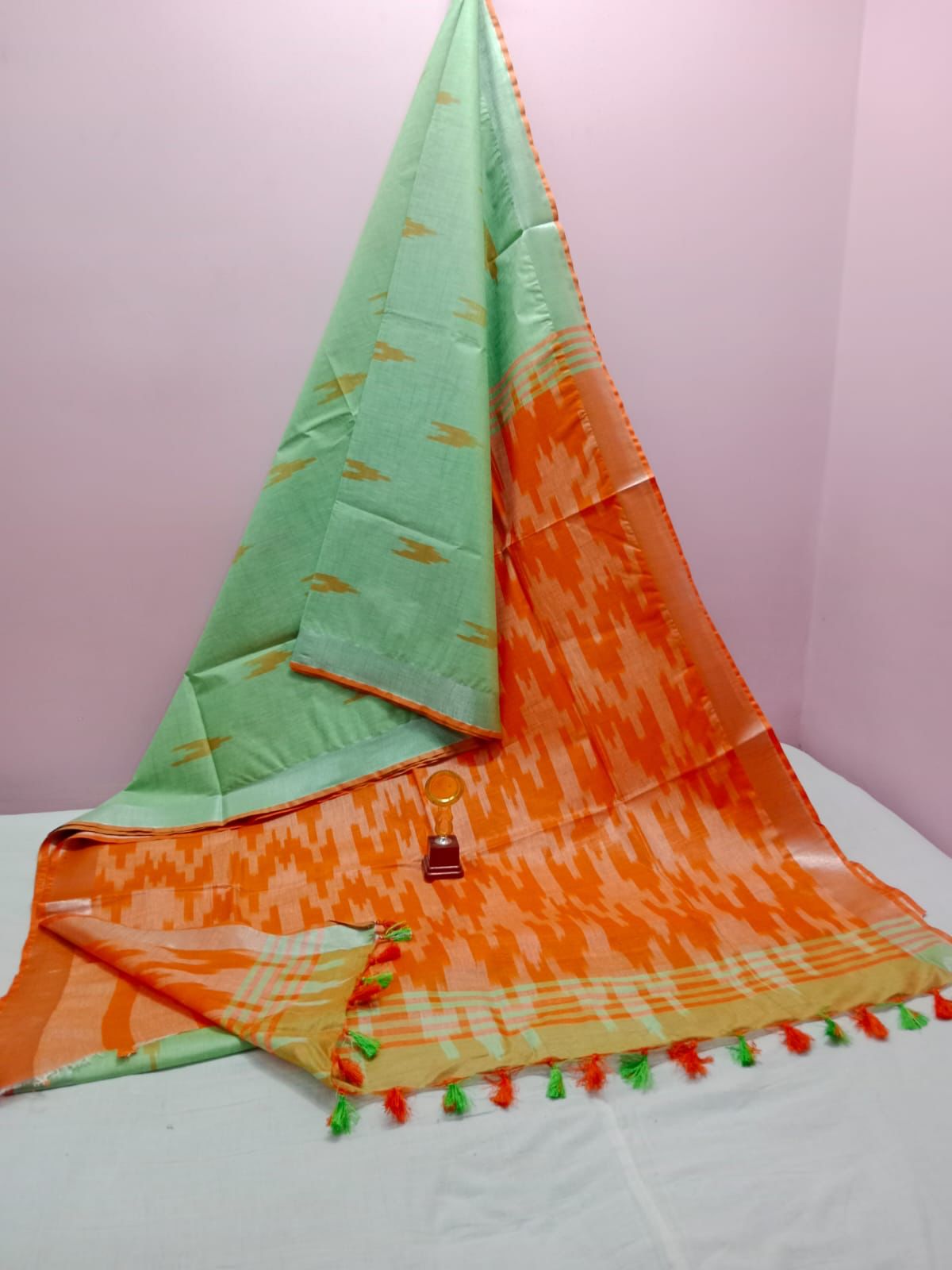 - Features an intricate Ikkat print.
