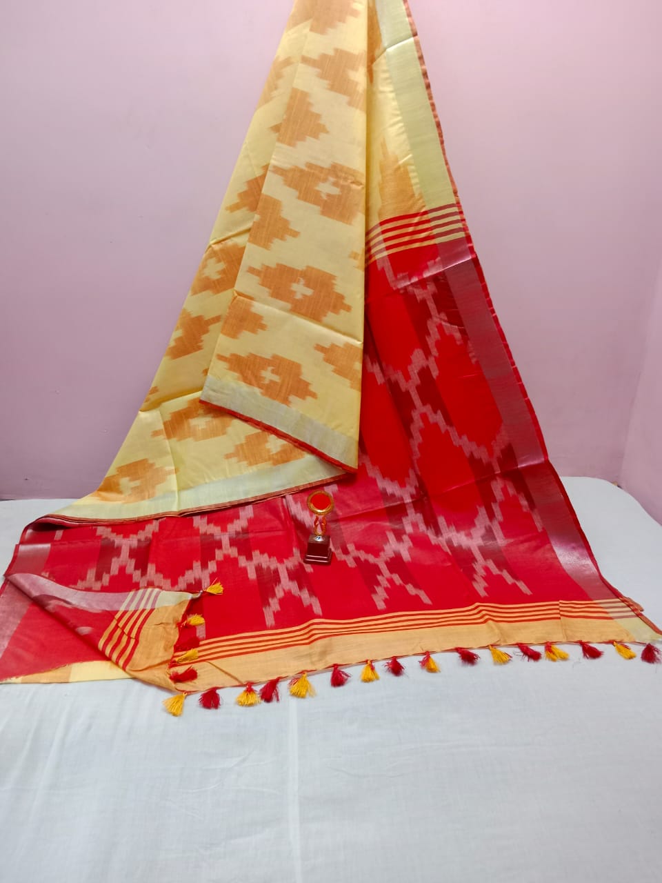 Traditional Handloom Pure Cotton Ikkat Saree for Women With Zari Border