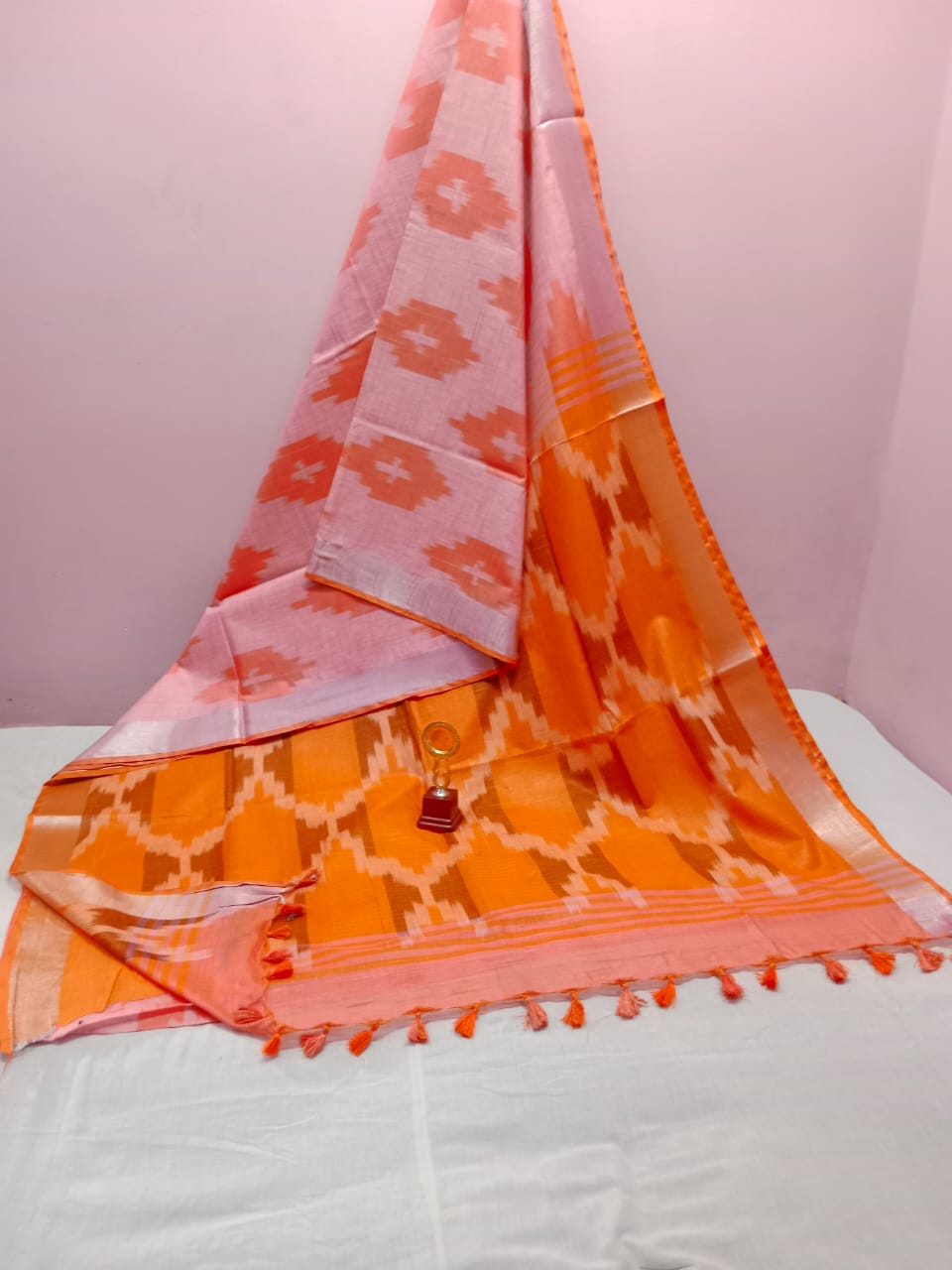 - Features an intricate Ikkat print.