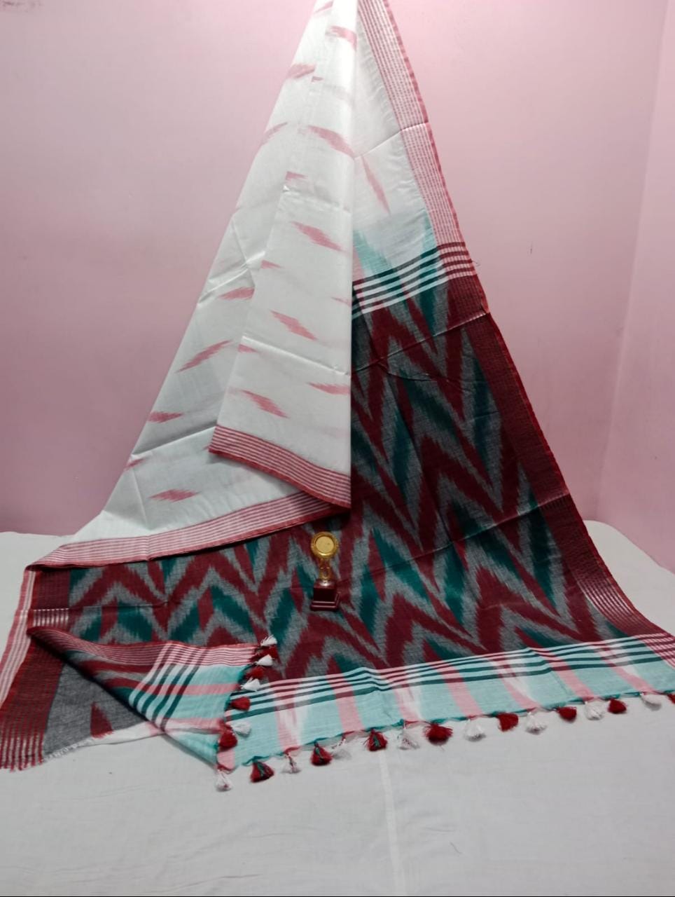 - Features an intricate Ikkat print.