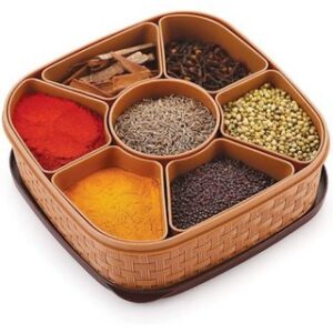 De’ Luce Plastic Wooden Style Masala Spice Rangoli Box