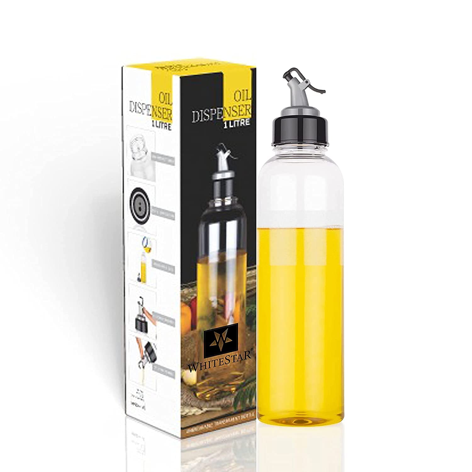 This oil dispenser 1 litre bottle is made of 100% food grade plastic. Storing different kinds of oils and other products in your kitchen is made easy with this amazing oil dispenser 1 litres. Elegant design and multiple uses, this plastic oil dispenser is one of the best ways to store and organize olive oil, vinegar and other necessary eatables in your kitchen. With this oil dispenser plastic, you can be assured that there will be no over-pouring, spilling, or wastage.This Oil dispenser is light and easy to use for all kinds of oils, be it cooking oils, salad oils, etc. Easy Flow Oil and Vinegar Dispenser Convenient Storage and Carrying Solution for Liquid Items Featuring a large 1 litre capacity, an ergonomic design and a smart lid feature for easy accessibility, the Jumbo Easy Flow Dispenser is an ideal solution for storing all your beverages and other liquids. You can also use this container to store liquids such as oil and easily pour them out when needed.