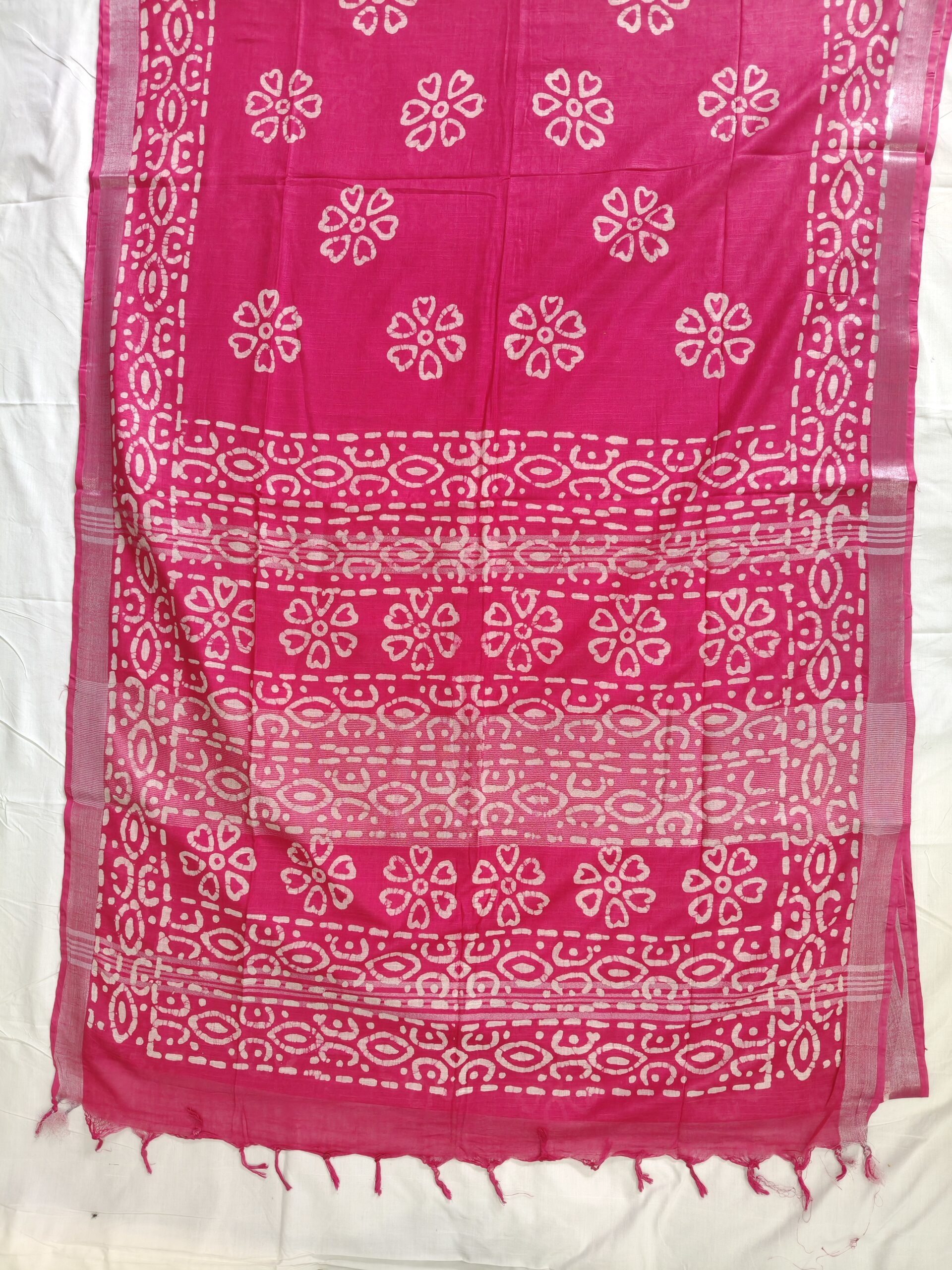 Pure Cotton Hand Block Batik Print Saree With Blouse Pcs-Hot Pink
