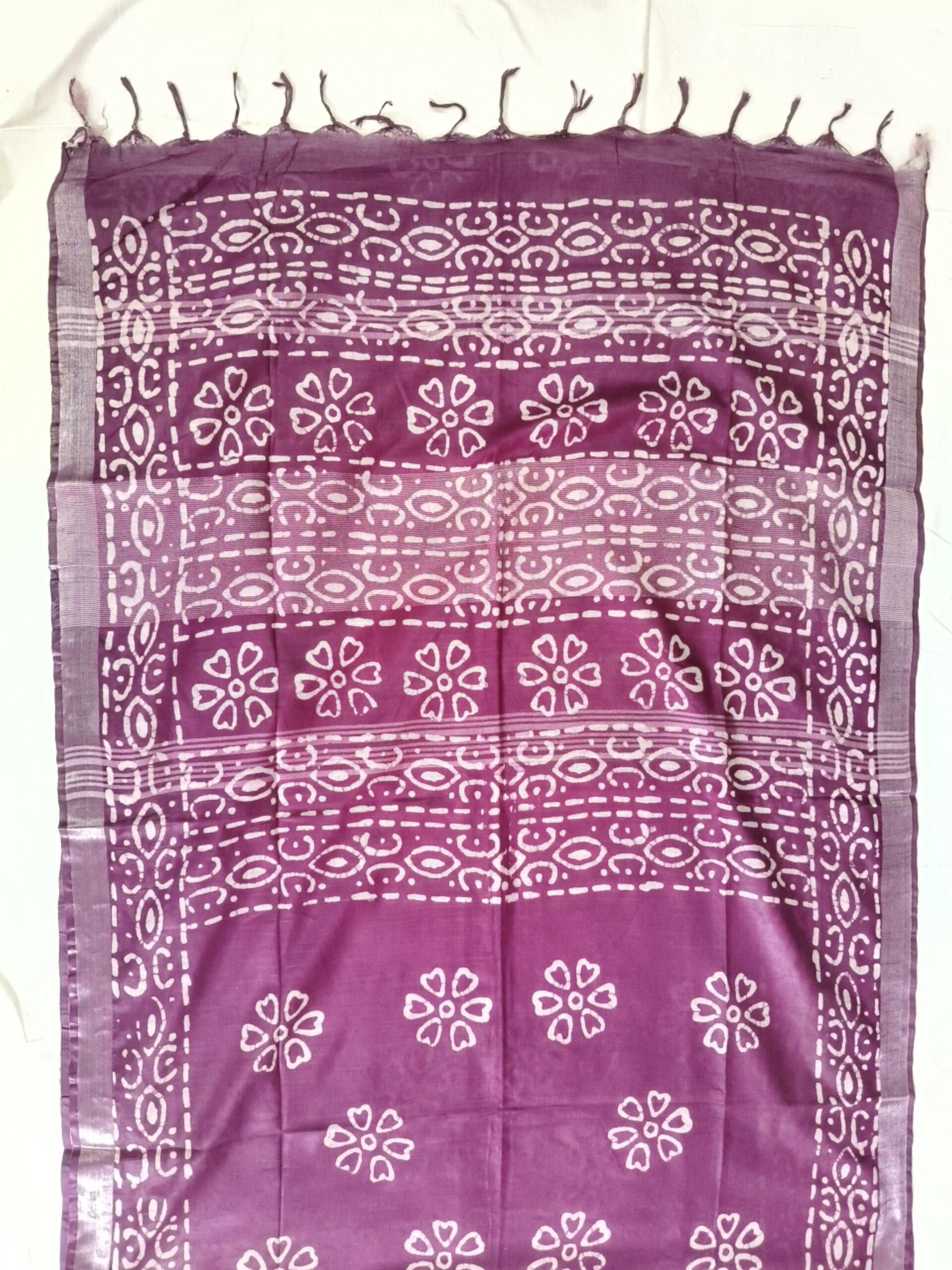 Pure Cotton Hand Block Batik Print Saree With Blouse Pcs-Wine