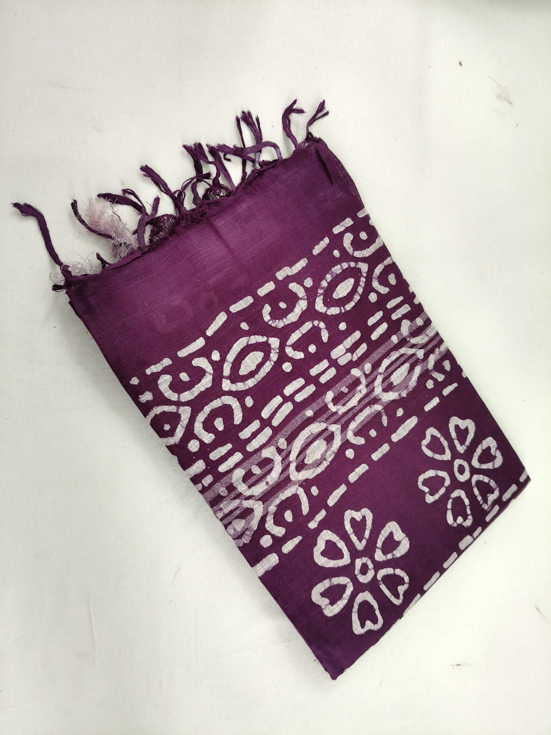 Pure Cotton Hand Block Batik Print Saree With Blouse Pcs-Wine