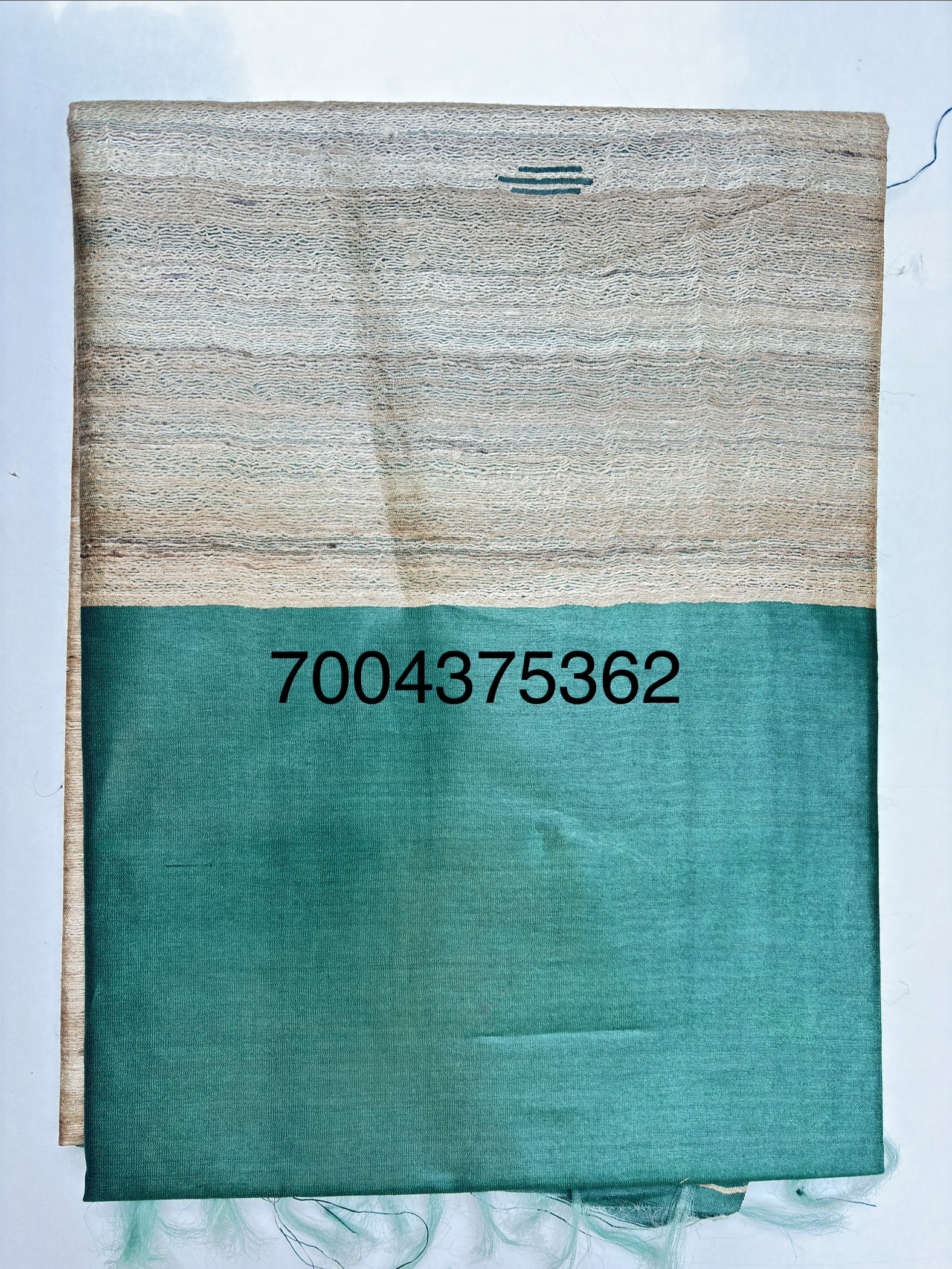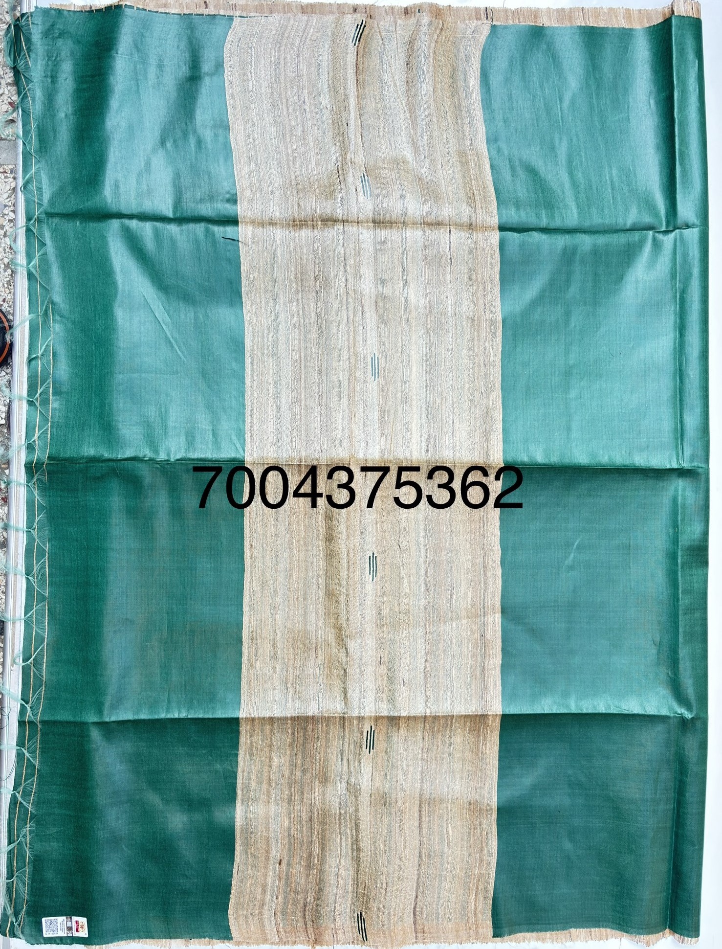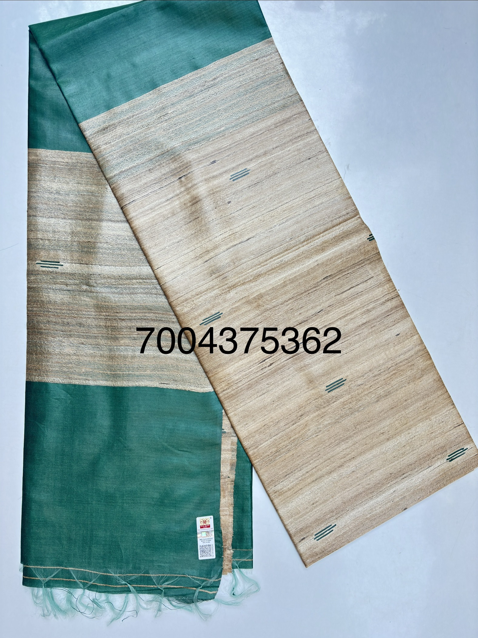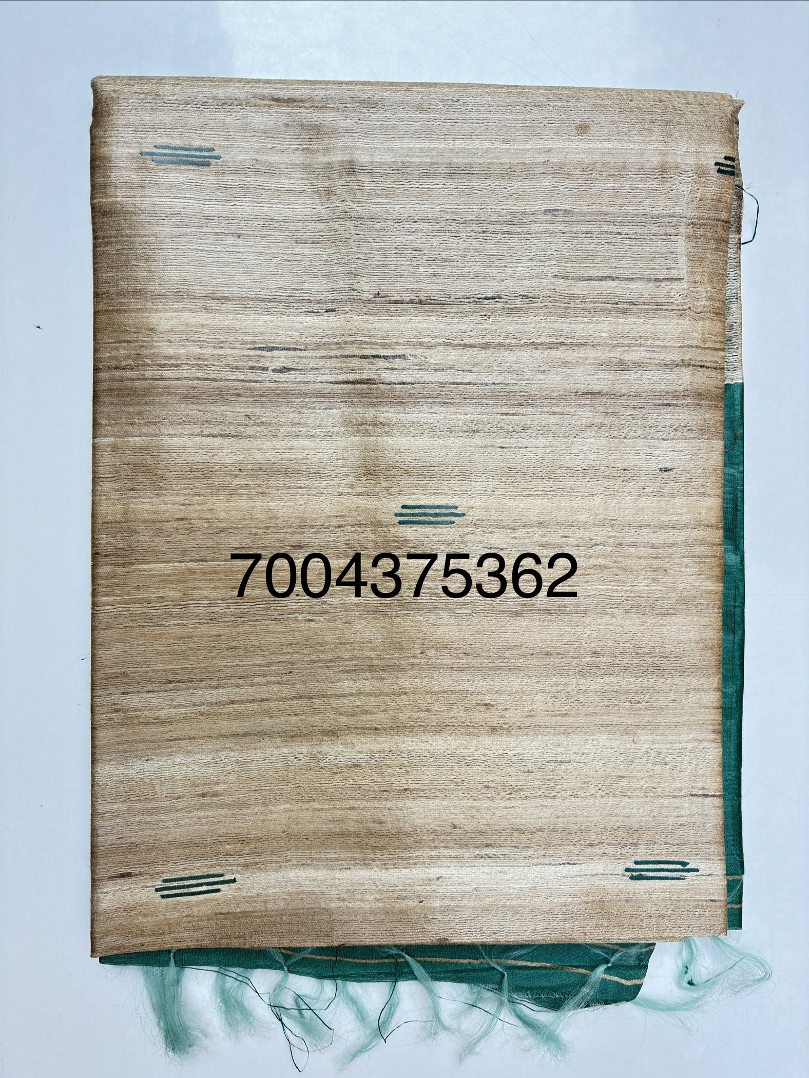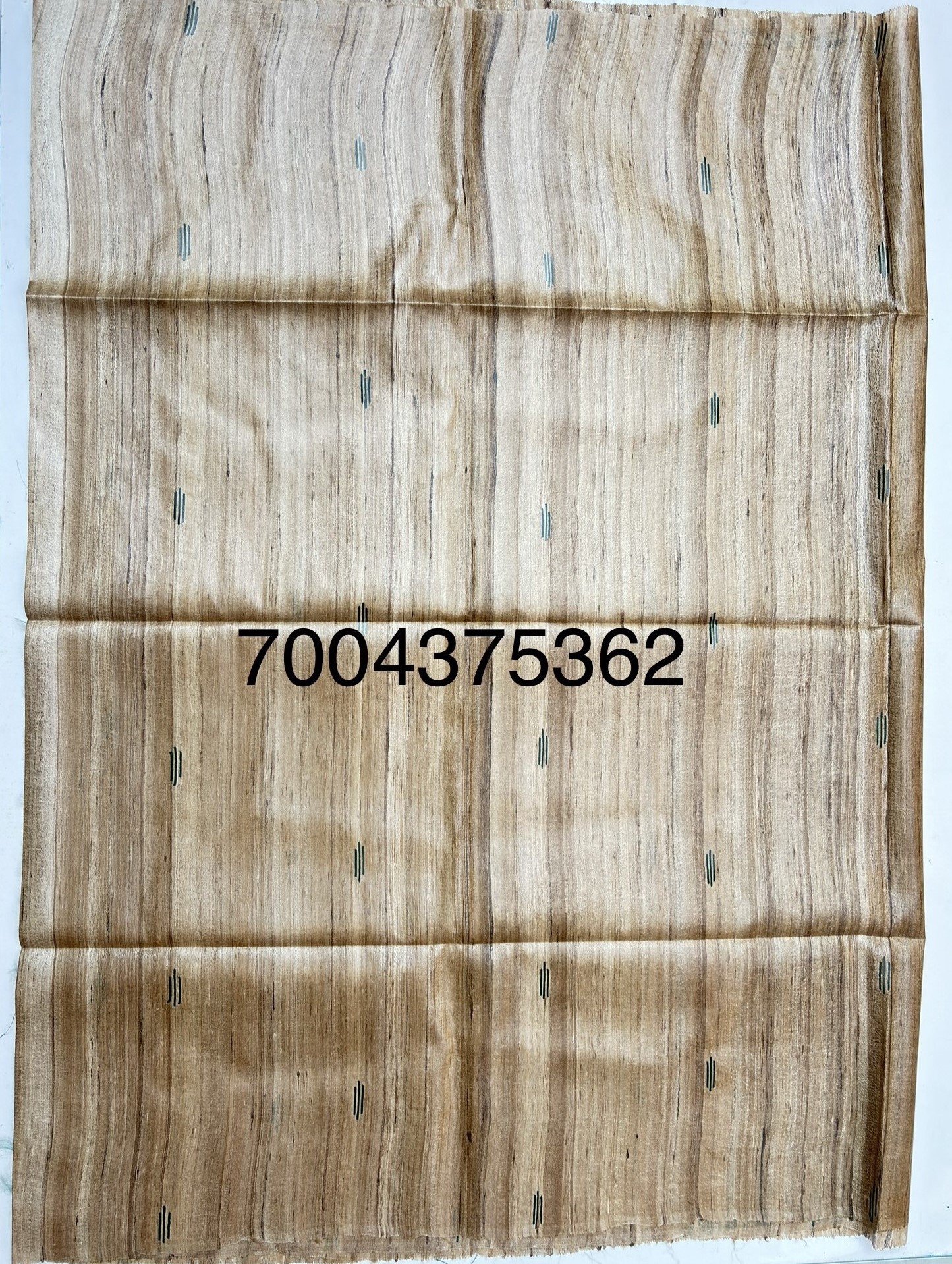 Pure Silk Tussar Ghicha Saree with Woven Zari Border with blouse piece.