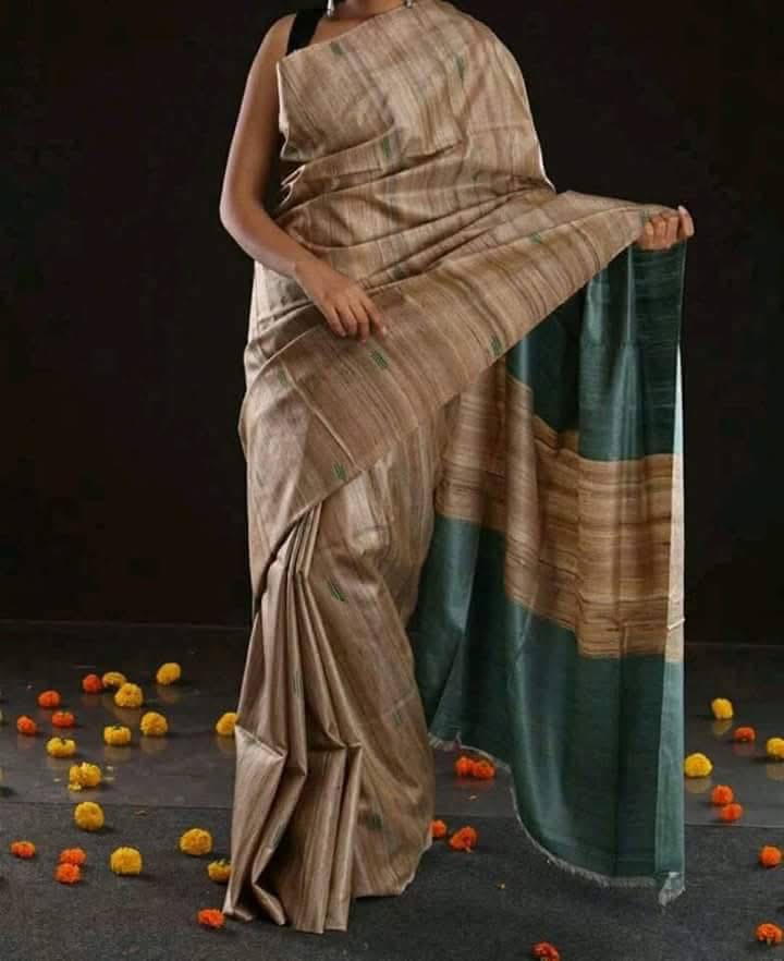 Pure Silk Tussar Ghicha Saree with Woven Zari Border: