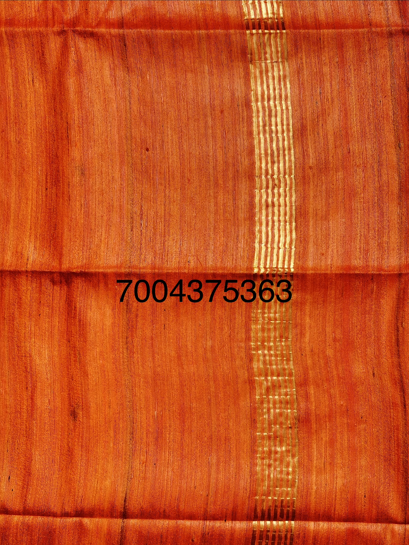 Pure Silk Tussar Ghicha Saree with Woven Zari Border with blouse piece.