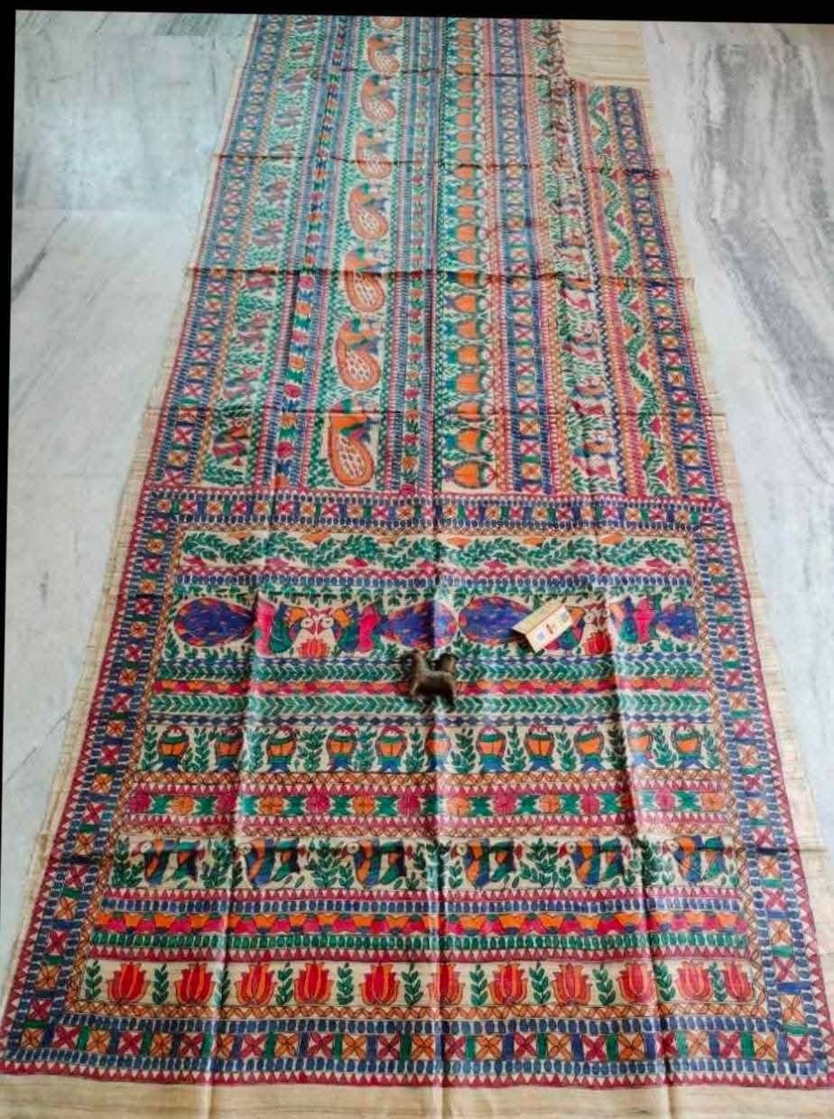 Tussar Ghicha Madhubani HandPainted Full Body Saree